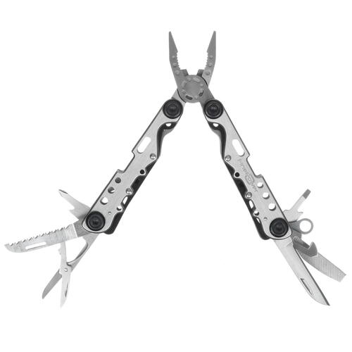Мультитул FinePower MFT101 – многофункциональный аксессуар, который одновременно объединяет в себе 10 инструментов и при этом отличается компактной складной конструкцией. Он оборудован плоскогубцами, кусачками, миниатюрной пилкой, открывалкой для консервных банок, отвертками с плоским и крестовым шлицем, ножом, ножницами, пилкой для ногтей. Мультитул FinePower MFT101 изготовлен из прочной и долговечной стали, что гарантирует устойчивость к повреждениям и износу. В комплекте поставляются практичный нейлоновый чехол и карабин.